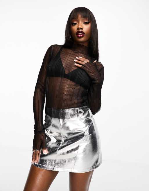 ASOS DESIGN - Mininederdel i metallisk, sølvfarvet og imiteret læder med spænde