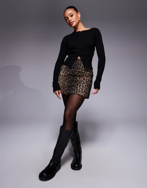 ASOS DESIGN - Mininederdel med børstet dyreprint