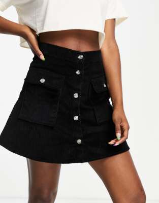 ASOS DESIGN - Mininederdel med knapper i sort fløjl