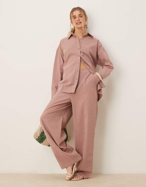ASOS DESIGN - Minkfarvet afslappet sæt med skjorte og bukser med striber i bæk-og-bølge-stof