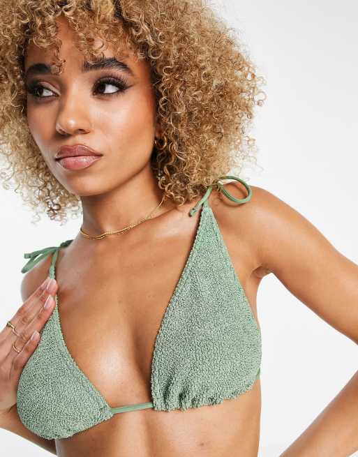 ASOS DESIGN - Mix and Match - Kakigrøn trekantsbikinitop i krølstof