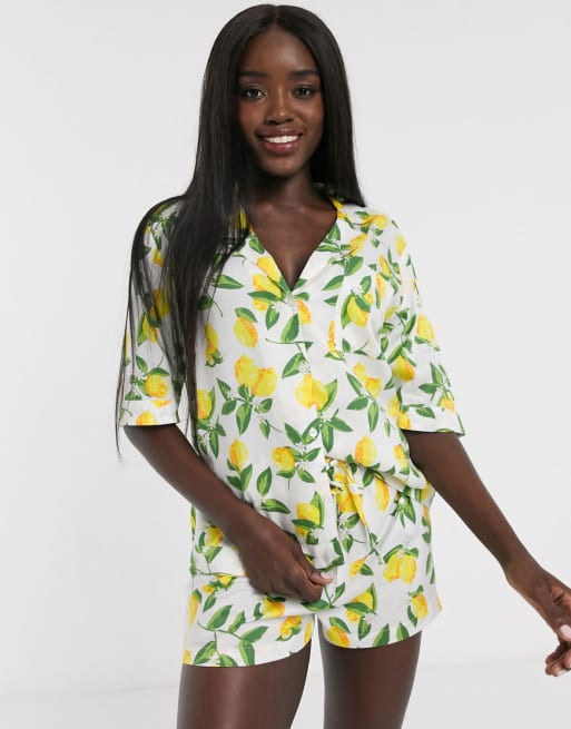 ASOS DESIGN - Mix and match skjorte og shorts i 100 % modal med citronprint