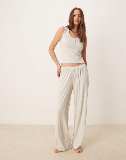 ASOS DESIGN - Mix og match - Beige ribstrikkede pyjamasbukser