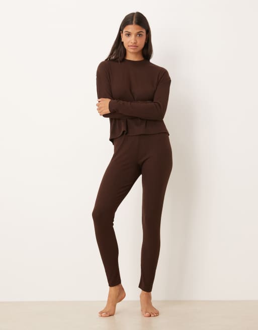 ASOS DESIGN - Mix og match - Chokoladefarvede ribstrikkede leggings