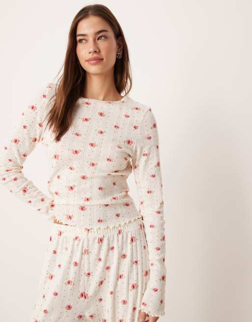 ASOS DESIGN - Mix og match - Langærmet pyjamastop i pointelle med småblomstret print