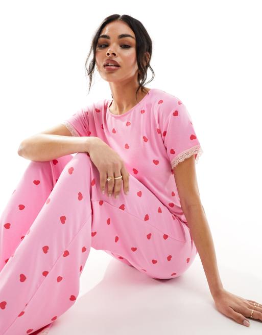 ASOS DESIGN - Mix og match - Pink og superblød pyjamas-t-shirt med hjerteprint