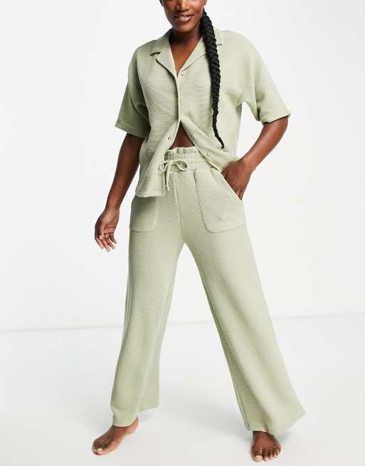 ASOS DESIGN - Mix og Match - Pyjamasskjorte i salvegrønt jersey-krølstof
