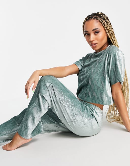 ASOS DESIGN - Mix og Match - Salviegrønt lounge-sæt i velour