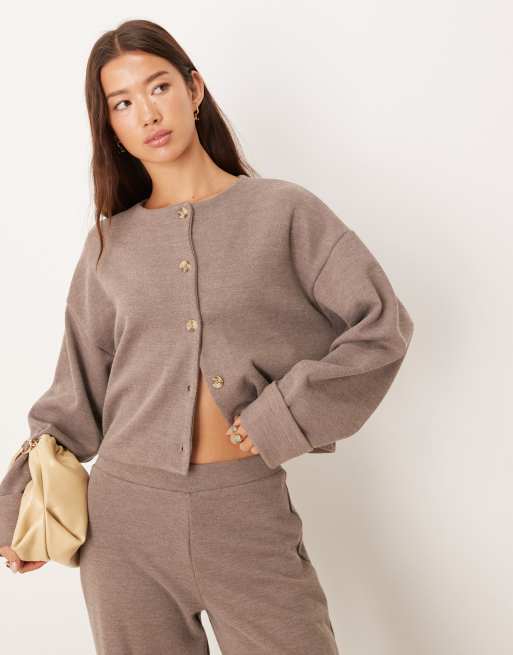 ASOS DESIGN - Mokkabrun superblød cardigan med knapper - Del af sæt