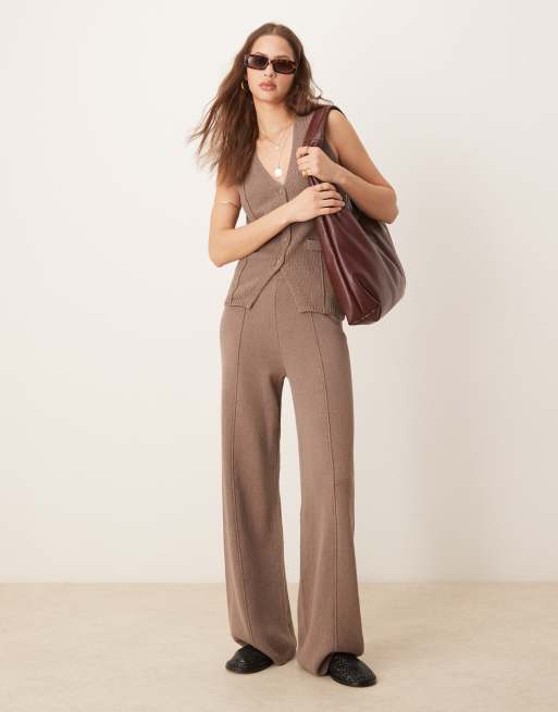 ASOS DESIGN - Mokkafarvede bukser med brede ben - Del af sæt