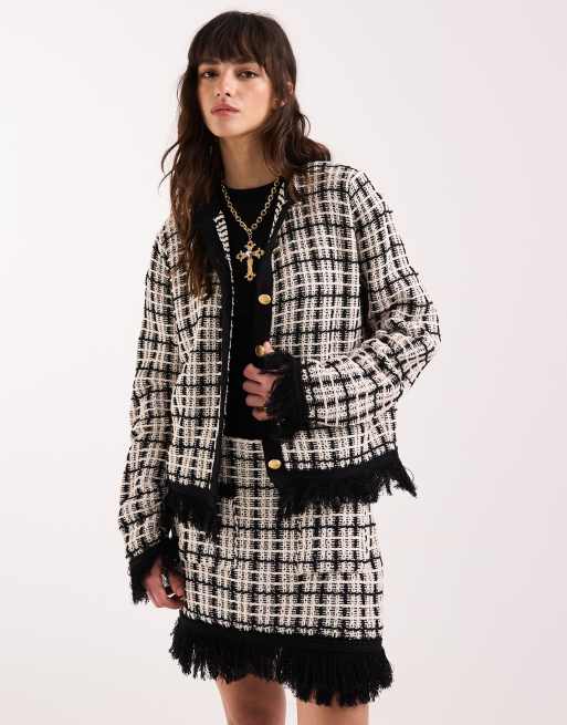 ASOS DESIGN - Monokrom cardigan i strikket tweed - Del af sæt