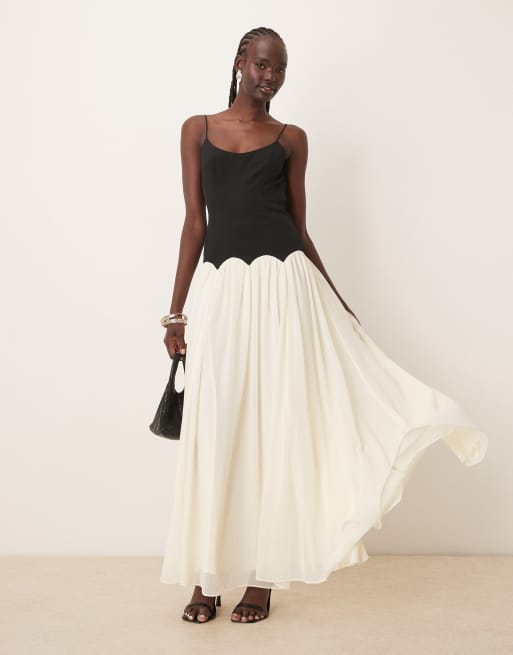 ASOS DESIGN - Monokrom maxikjole med farveblok og camistropper i forskellige materialer og med sænket talje