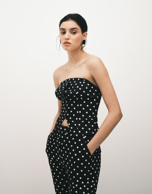 ASOS DESIGN - Monokrom skræddersyet bandeau-top med prikker