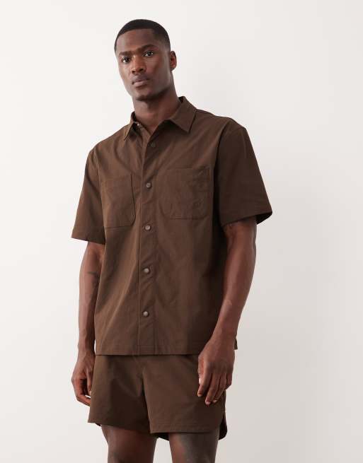 ASOS DESIGN - motionMAX - Brunt sæt med skjorte og shorts