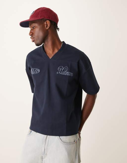 ASOS DESIGN - Mørkeblå, oversized og firkantet T-shirt i kraftigt stof på 300 gsm med sammensyede paneler