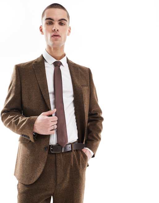 ASOS DESIGN - Mørkebrun slim fit-habitjakke i uldblanding