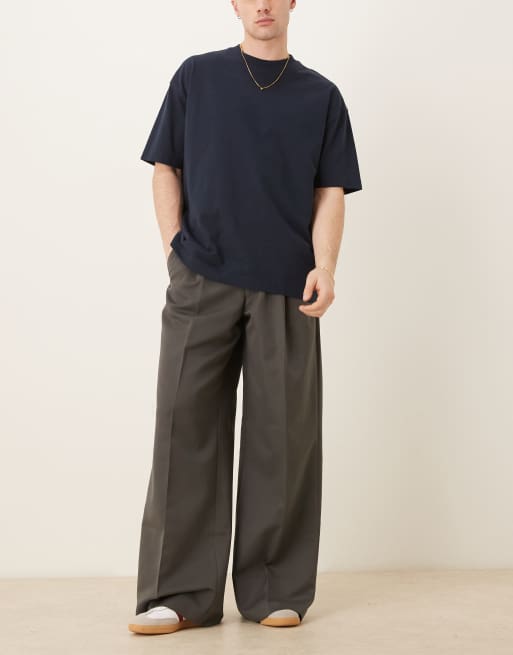 ASOS DESIGN - Mørkegrå elegante løstsiddende bukser med læg foran