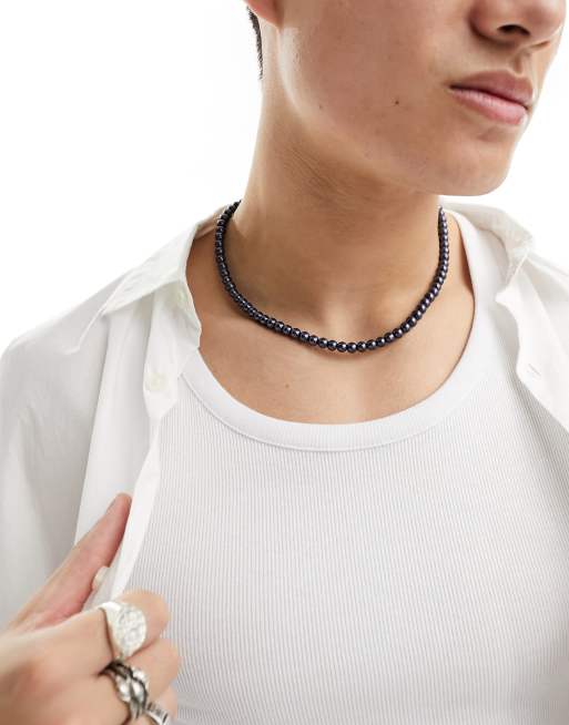 ASOS DESIGN - Mørkegrå halskæde med imiterede perler