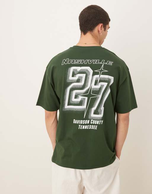 ASOS DESIGN - Mørkegrøn oversized T-shirt med bygrafik