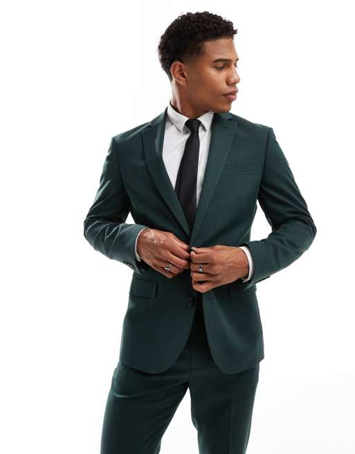 ASOS DESIGN - Mørkegrøn skinny-habitjakke med sildebensmønster