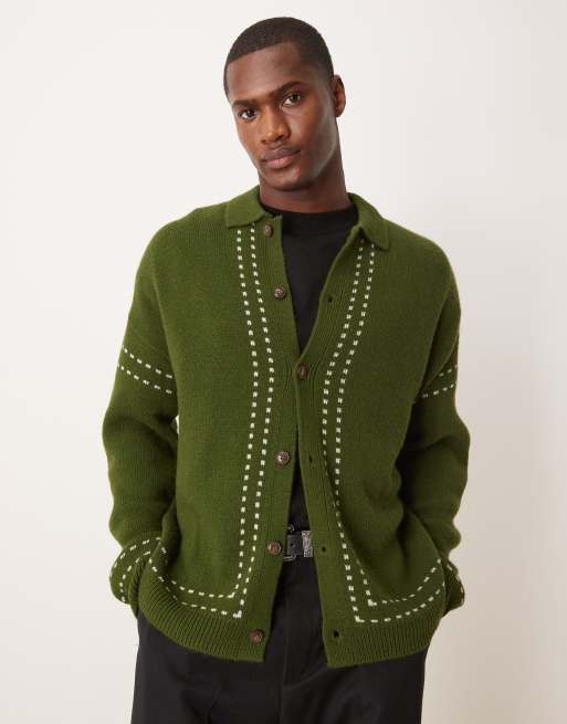ASOS DESIGN - Mørkegrøn strikket afslappet poloskjorte med knapper
