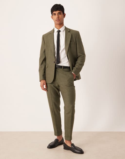 ASOS DESIGN - Mørkegrønne habitbukser med indsnævrede ben og tern