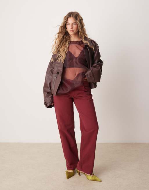 ASOs DESIGN - Mørkerøde jeans med lav talje i slim fit