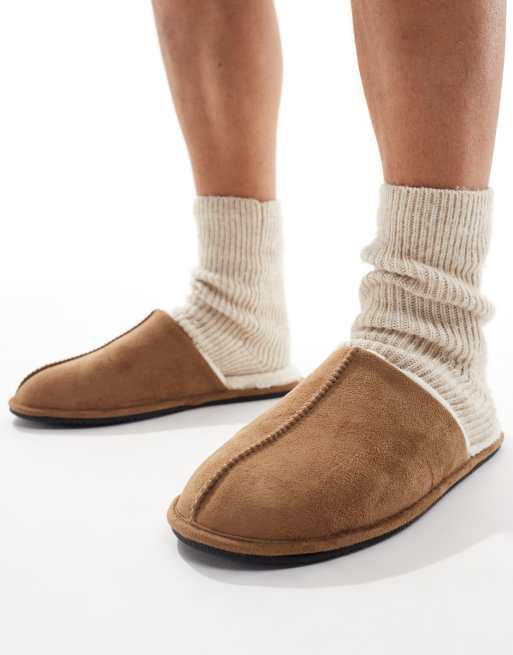 ASOS DESIGN - Mule-hjemmesko i lysebrun og imiteret ruskind med for i imiteret rulam