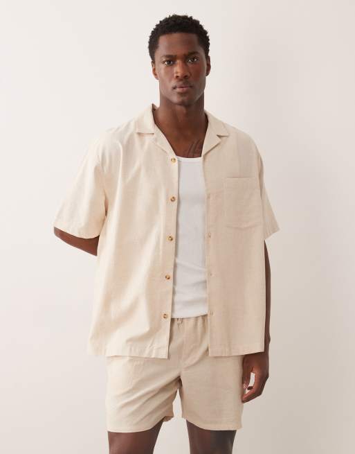 ASOS DESIGN - Naturfarvet afslappet skjorte med reverskrave i hørblanding - Del af sæt