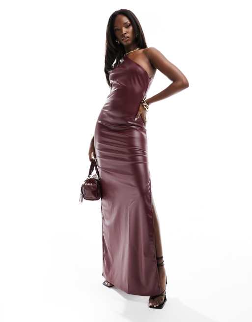 ASOS DESIGN - Okseblodsfarvet maxikjole i imiteret læder med oneshoulder