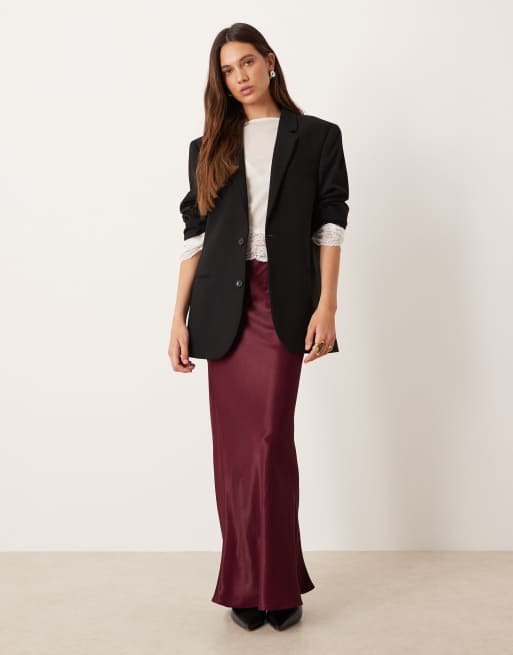 ASOS DESIGN - Olivengrøn midinederdel med skråsnit i satin