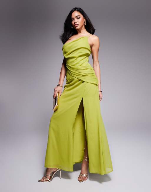 ASOS DESIGN - Olivengrøn oneshoulder-maxikjole med drapering