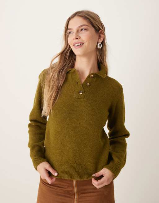 ASOS DESIGN - Olivengrøn striktrøje med krave