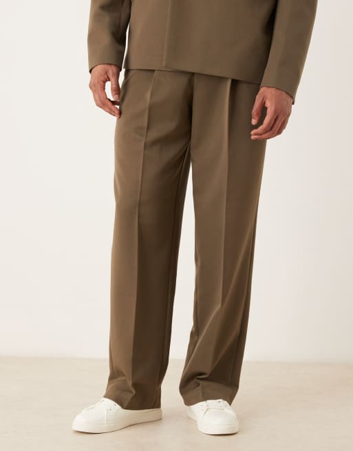ASOS DESIGN - Olivengrønne habitbukser med vide ben