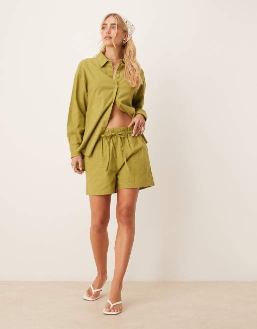 ASOS DESIGN - Olivengrønne shorts i hørlook - Del af sæt