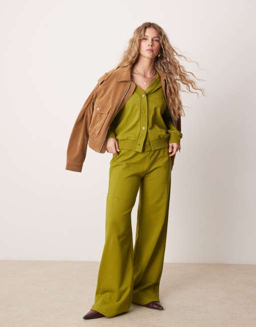 ASOS DESIGN - Olivengrønt sæt med joggingbukser og sweat-cardigan