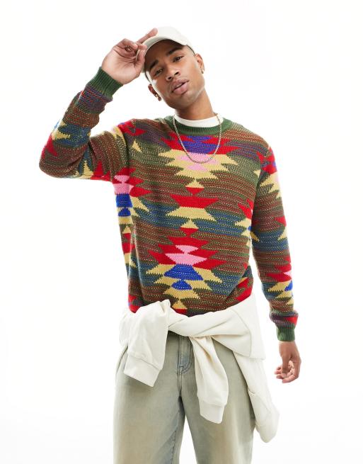 ASOS DESIGN - Orange striktrøje med aztekermønster