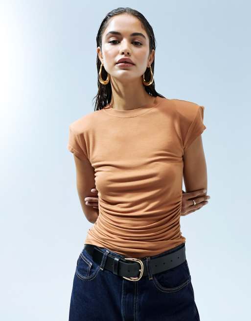 ASOS DESIGN - Orangebrun top med rynker i siderne