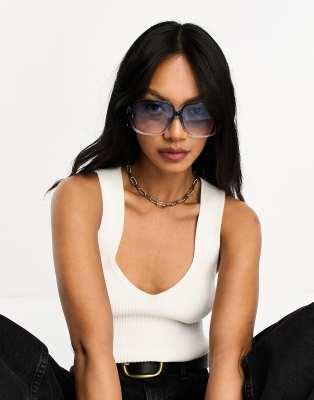 ASOS DESIGN - Oversized 70'er-solbriller med fint stel i krystalblå