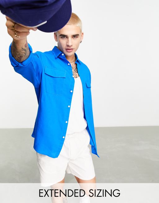 ASOS DESIGN - Oversized 90'er-skjorte med dobbeltlomme i blå hørblanding