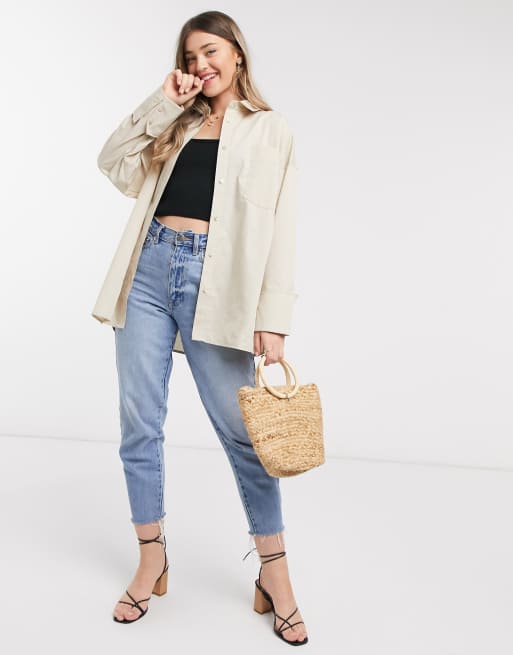 ASOS DESIGN - Oversized afslappet dad-skjorte i lys beige