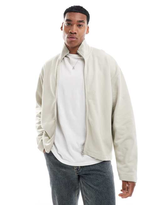 ASOS DESIGN - Oversized, beige træningsjakke i blød jersey i firkantet pasform