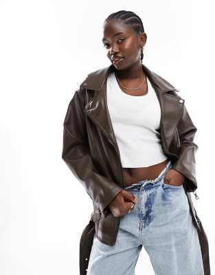 ASOS DESIGN - Oversized bikerjakke i chokoladebrun