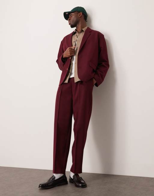 ASOS DESIGN - Oversized bordeauxrøde habitbukser med tapered fit i twill