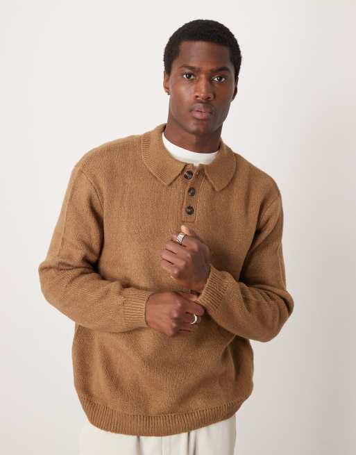 ASOS DESIGN - Oversized brun polotrøje i børstet strik