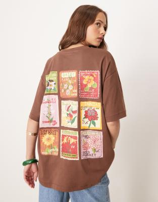 ASOS DESIGN - Oversized brun T-shirt med grafisk frøpakke-print