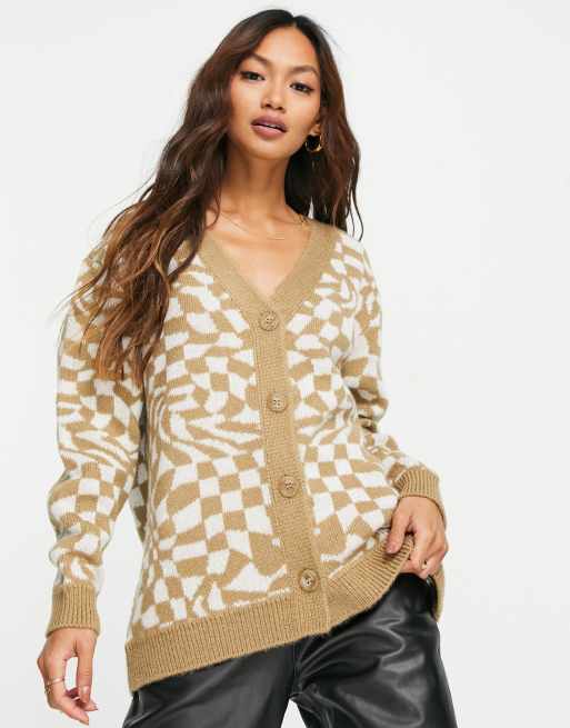 ASOS DESIGN - Oversized cardigan i forvrænget ternet mønster