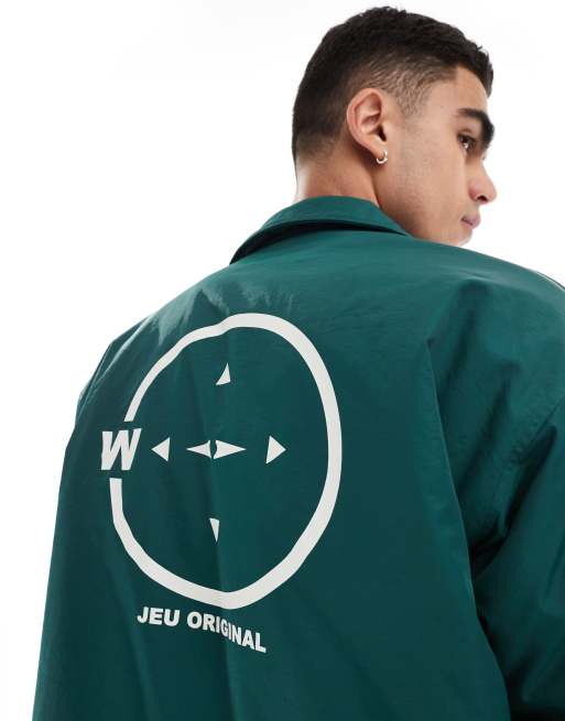 ASOS DESIGN - Oversized coach-jakke med polstring og hvidt college-design i grøn