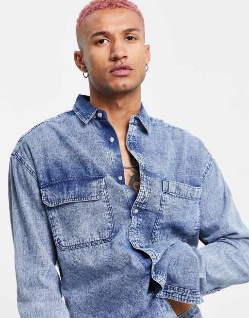 ASOS DESIGN - Oversized denimskjorte i stenvask i 90'er-stil