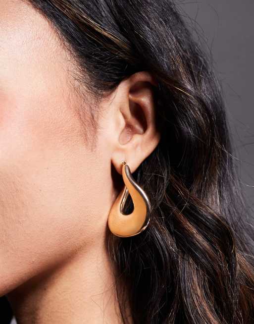 ASOS DESIGN - Oversized hoop-øreringe med abstrakte detaljer i børstet guldfarve